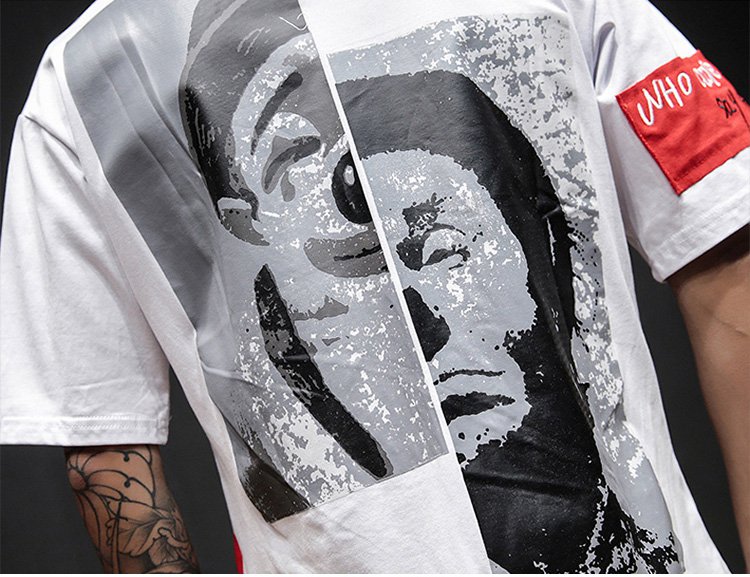 【メンズTシャツ】半袖 コットン クルーネック ピエロ 著痩せ  刺繍