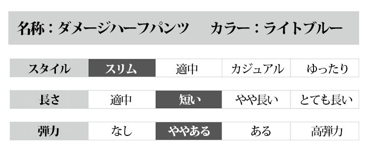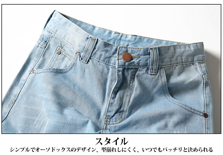 【ダメージハーフパンツ】通気透湿 立体剪裁 静電気防止 弾力 ファッション